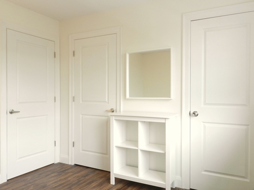 ・窓2つ、ナイトスタンド、本棚、ドレッサー、引き出し